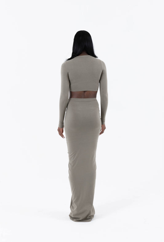 Krystal Ruched Maxi Skirt - KhakiRegular price $90.00 USDRegular priceUnit price / per-